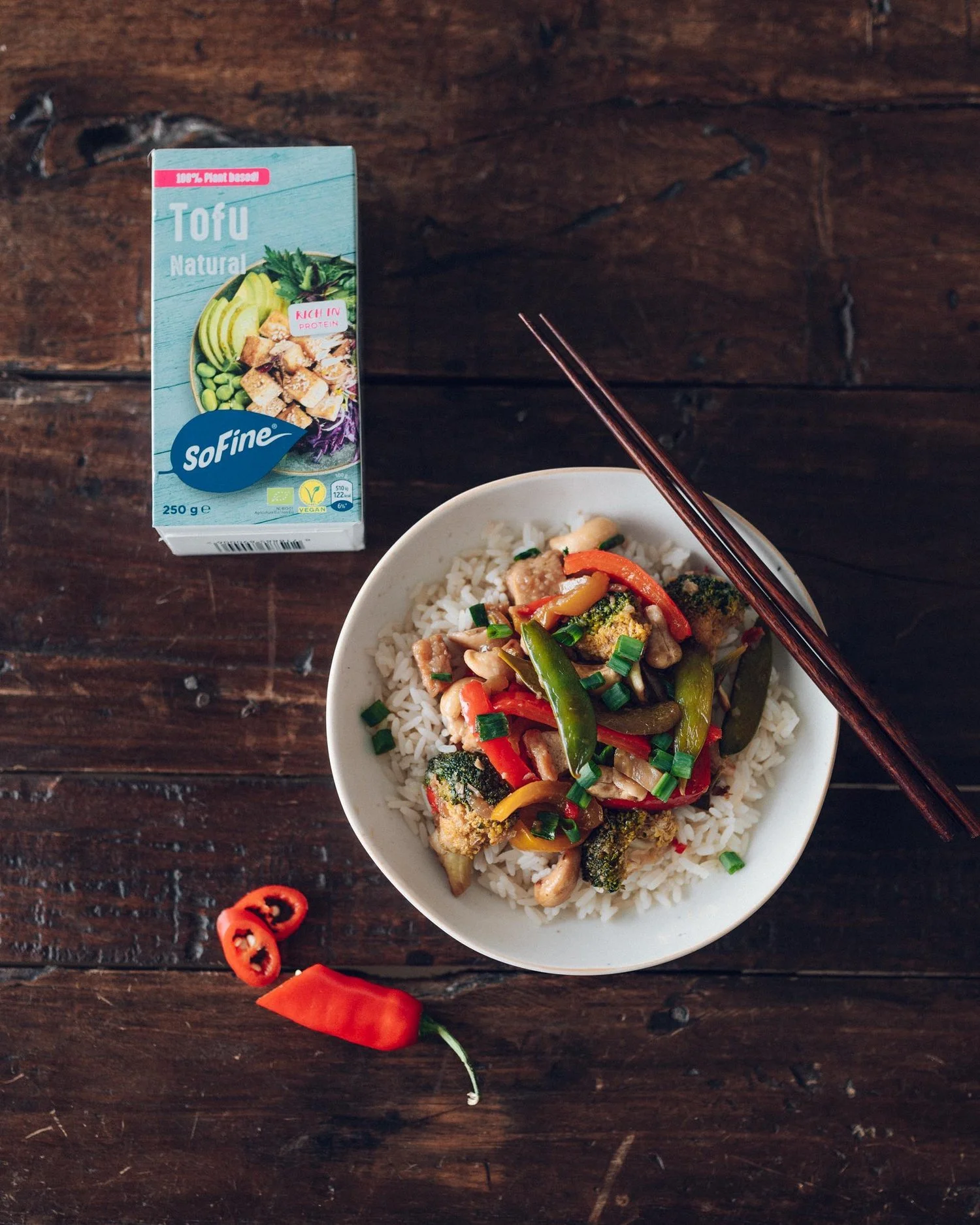 Tykkään käyttää SoFinen Naturel tofua, koska se on miedon makunsa puolesta älyttömän monipuolinen, se sisältää kaikki yhdeksän aminohappoa ja se valmistetaan soijasta, jota ei ole geenimuunneltu. Eli siis täydellinen tuote niin ympäristölle, eläimille sekä makuhermoille.
