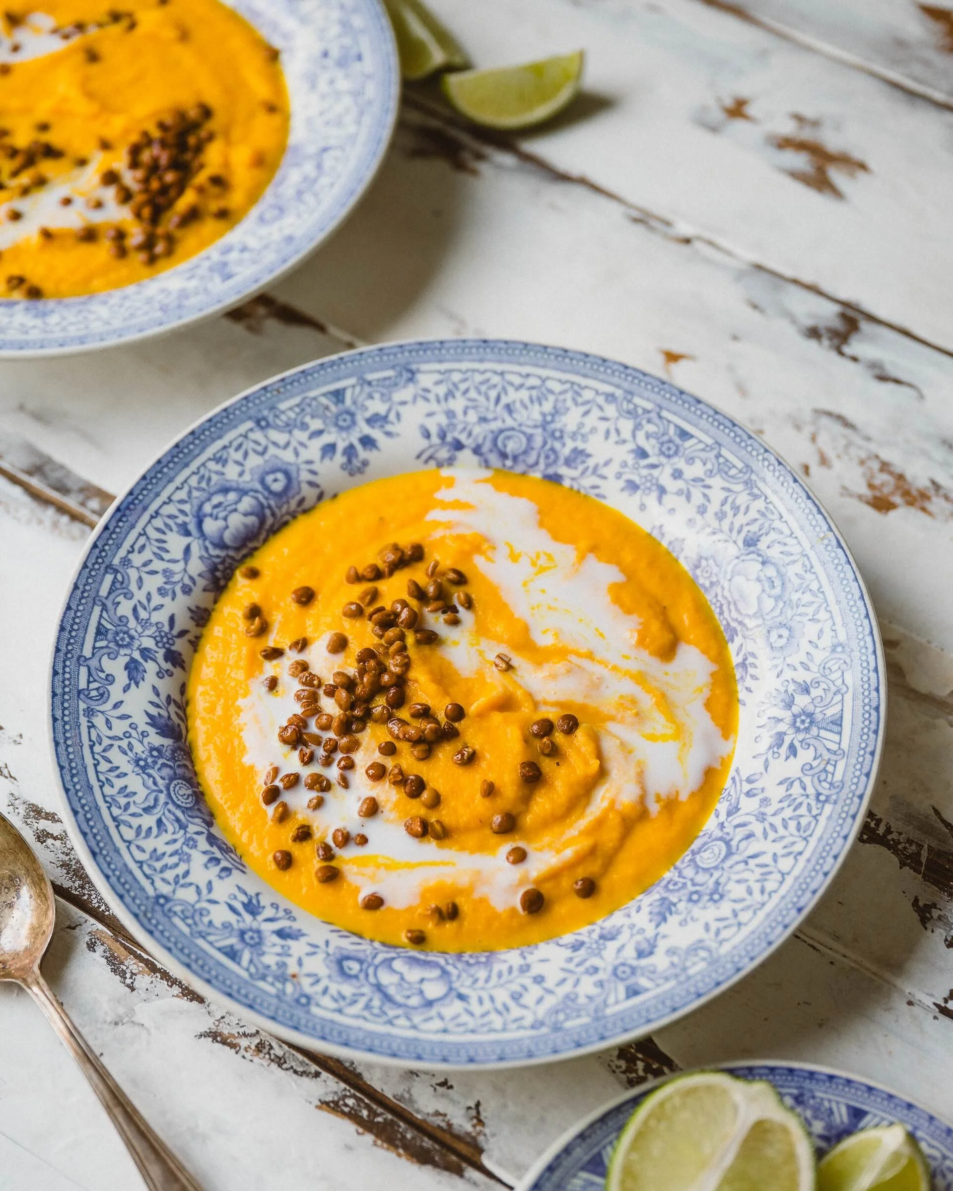 Raikkaan täyteläinen porkkana-limekeitto on täydellinen ruoka jokaiselle, joka on kyllästynyt tekemään kasvissosekeiton aina samalla tavalla tai kaipaa muuten vain uutta inspiraatiota helppoihin arkiruokiin. Tämä porkkanakeitto, jossa maistuu ihanasti lime, on lempparini! Limen lisäksi makua keittoon tuo inkivääri ja kurkuma. Päälle paahdetaan rapeita linssejä eikä annokselle jää hintaa kuin 80 senttiä.
