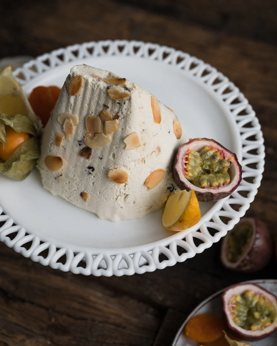 Lusikoi suodatinpussilla vuorattuun kahvin suodattimeen ja valuta yön yli. Koristele esimerkiksi ananaskirsikoilla, sitruunan lohkoilla, passionilla sekä paahdetuilla mantelilastuilla. Voit myös käyttää mitä vain lempparihedelmiäsi pashan koristeluun viinirypäleistä aprikooseihin tai persikoihin.